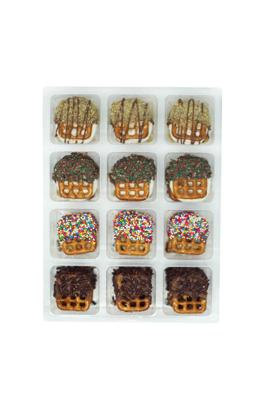 Pretzelwiches are bite-size snacking delicacies made up of two square pretzels, a delicious